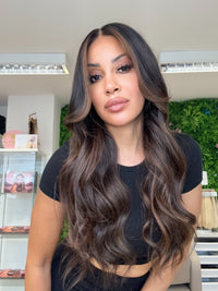 SERENA - HD Lace Frontal Human Hair Wig |dark chocolate brown with caramel highlights -Glueless