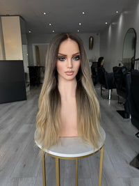 SORAYA HD LACE FRONTAL HUMAN HAIR WIG ASH BLONDE ROOT BALAYAGE WITH BLONDE ENDS